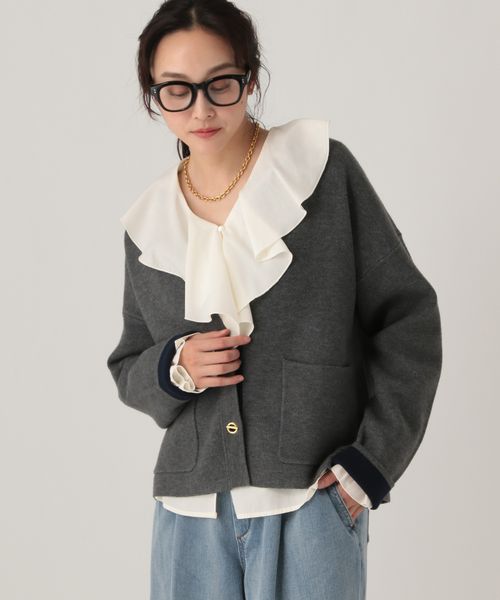 フリルVネックブラウス