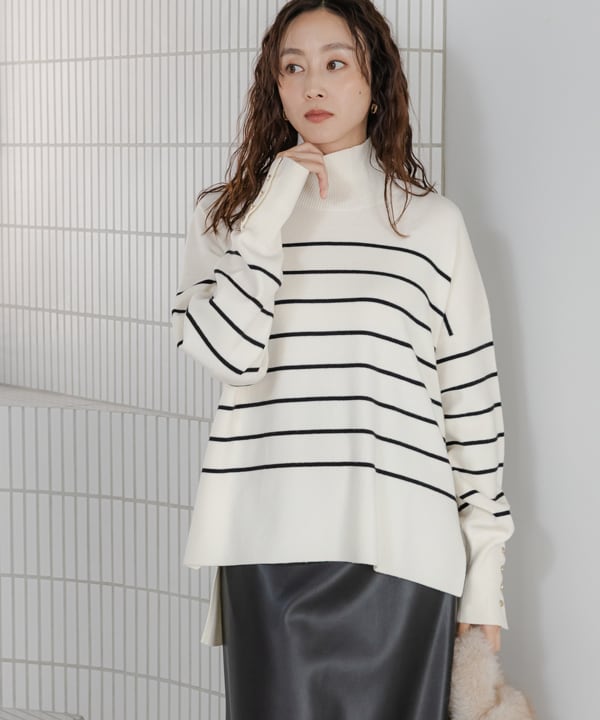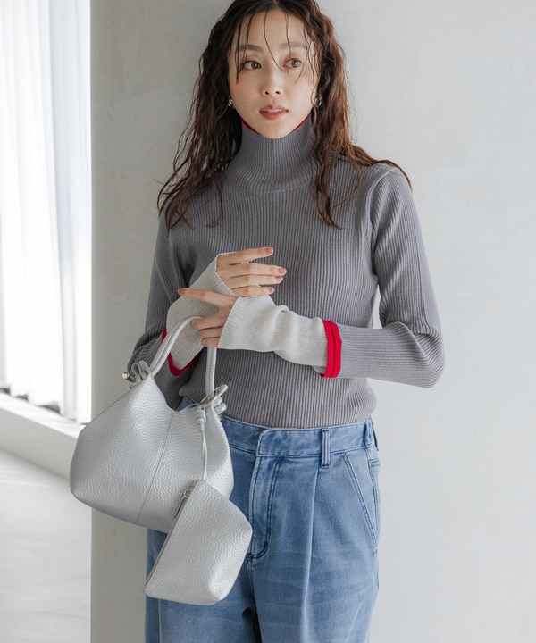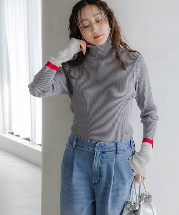 配色リブタートルニット