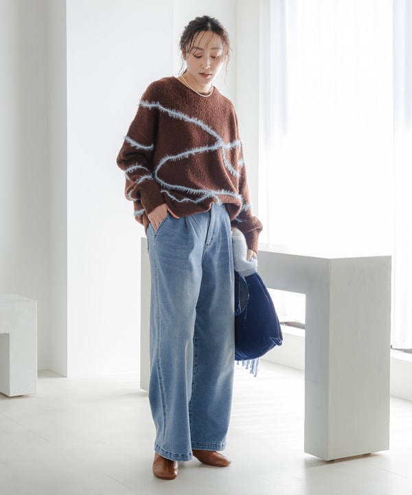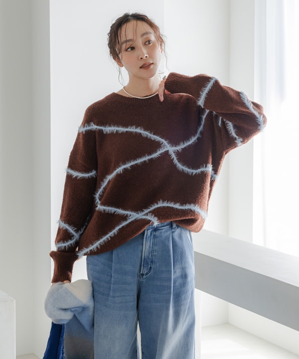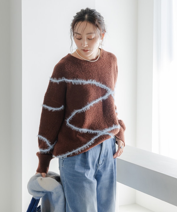 シャギーラインニット