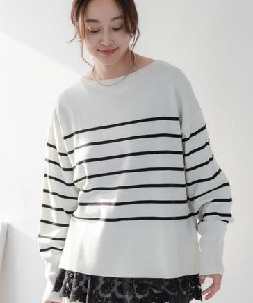 シャギーラインニット