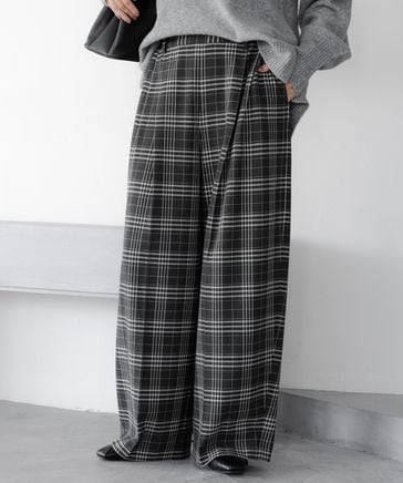 ウールライク柄ワイドパンツ<低身長サイズあり>
