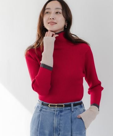 配色リブタートルニット