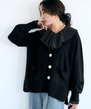 パールボタンリブカーディガン