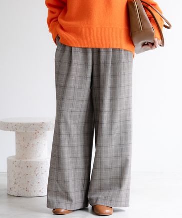 スリムウォームチェックワイドパンツ<低身長サイズあり>