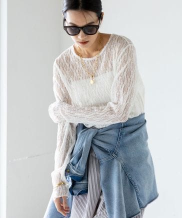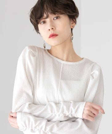 袖レイヤードチュールプルオーバー