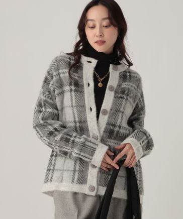 チェックニットカーディガン