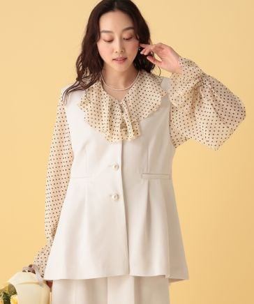 ドットサテン開襟ブラウス