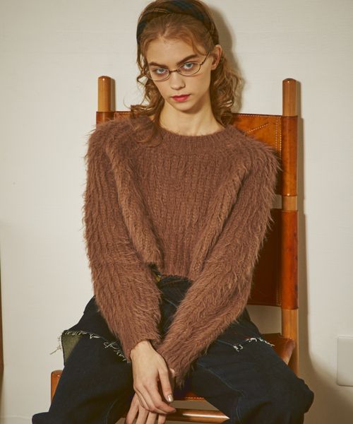 クロップドシャギーニットプルオーバー
