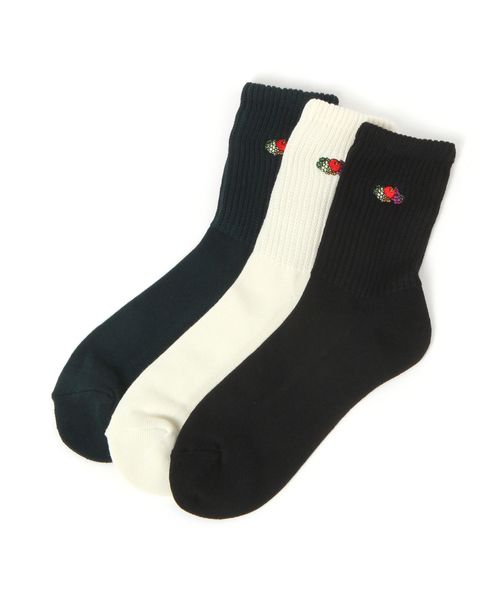 【25-27cm】FRUIT OF THE LOOM ゆるリッチェル編み刺繍ソックス 3足セット