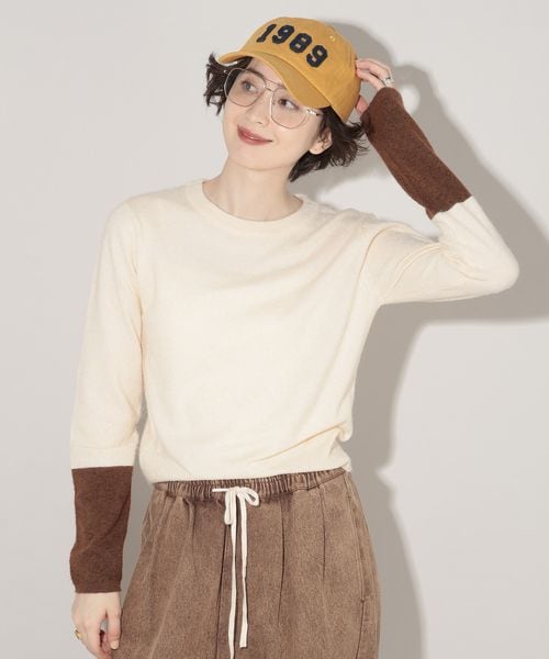 バイカラースリーブニット