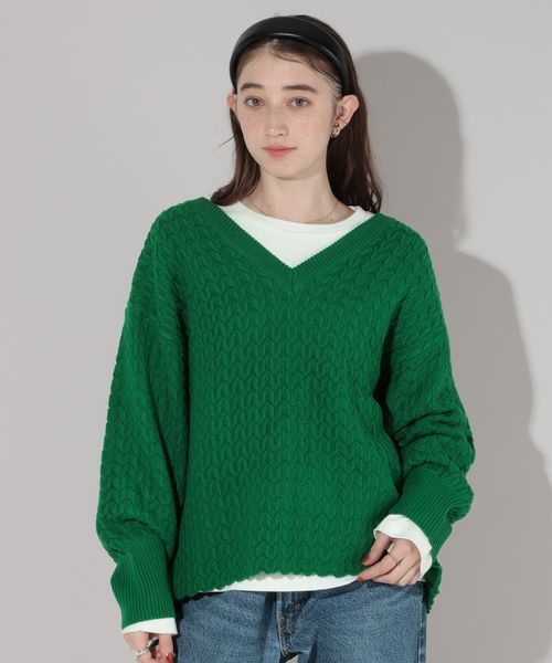 カワリケーブルVネックニット