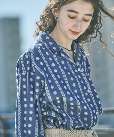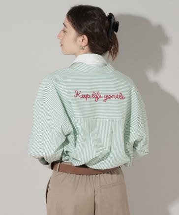 ストライプ刺繍シャツ