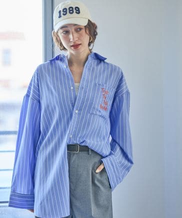 ストライプ刺繍チュニックシャツ