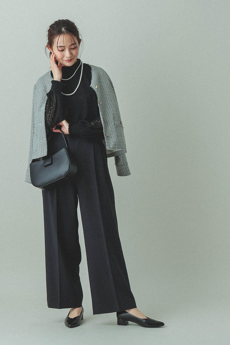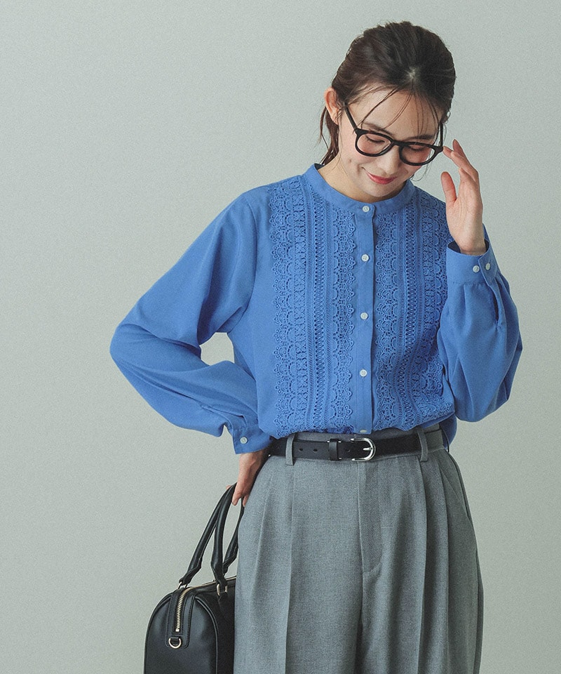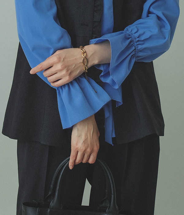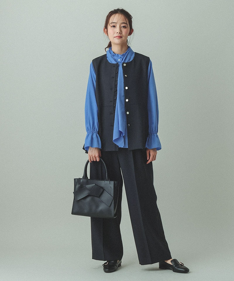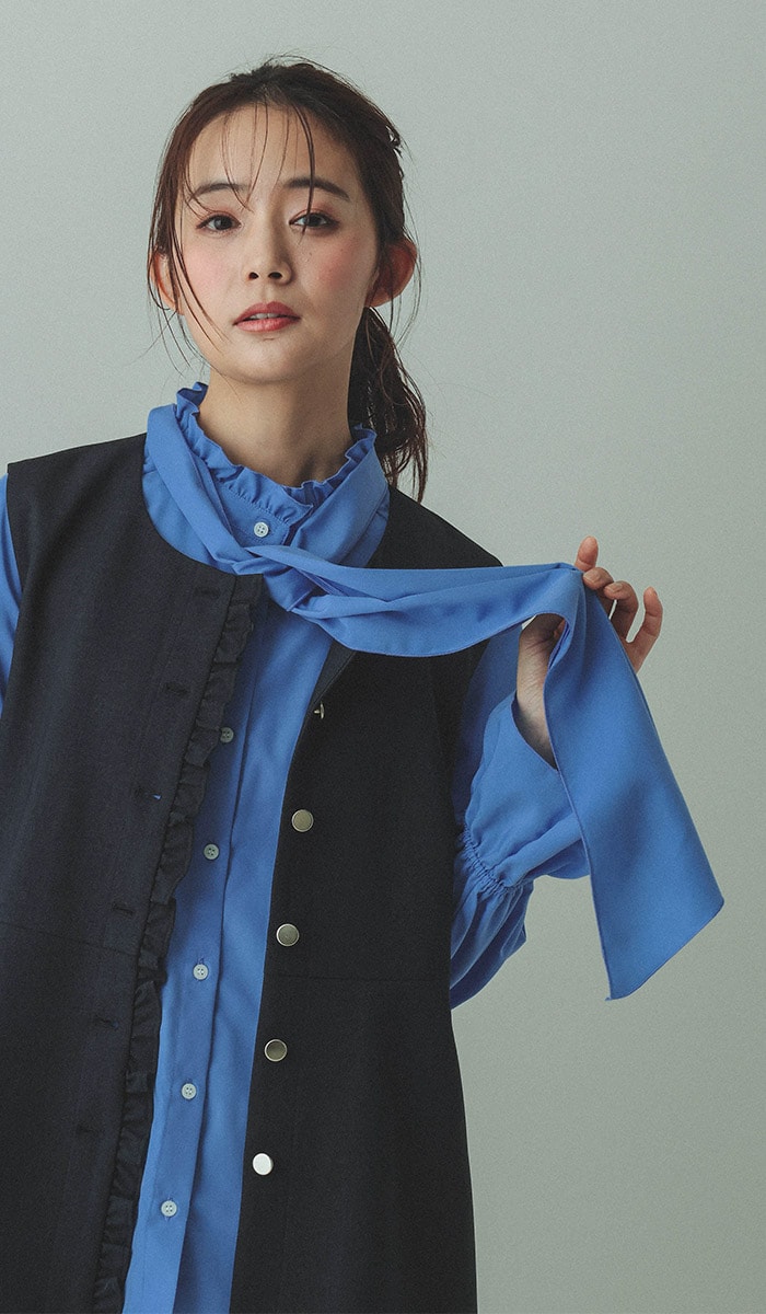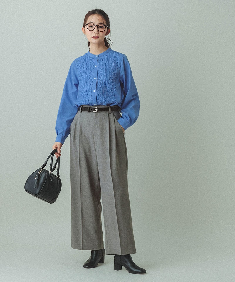 知的なブルーを主役にした、洗練オフィスカジュアル。