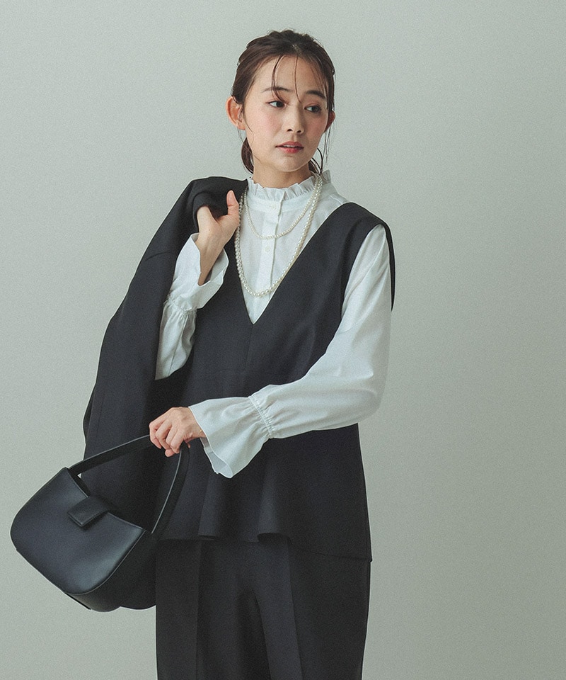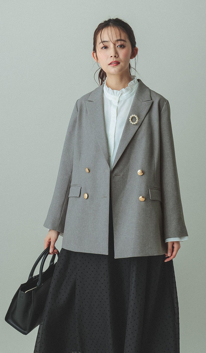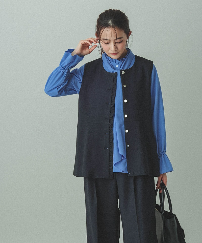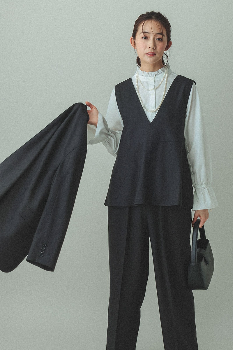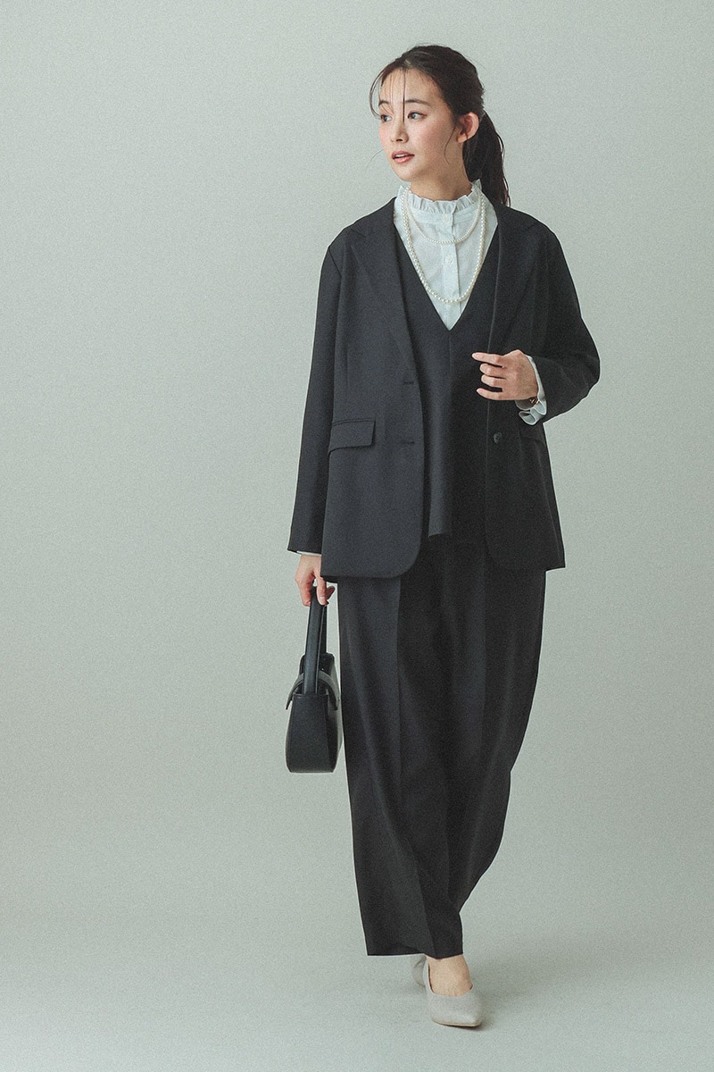 知的なブルーを主役にした、洗練オフィスカジュアル。