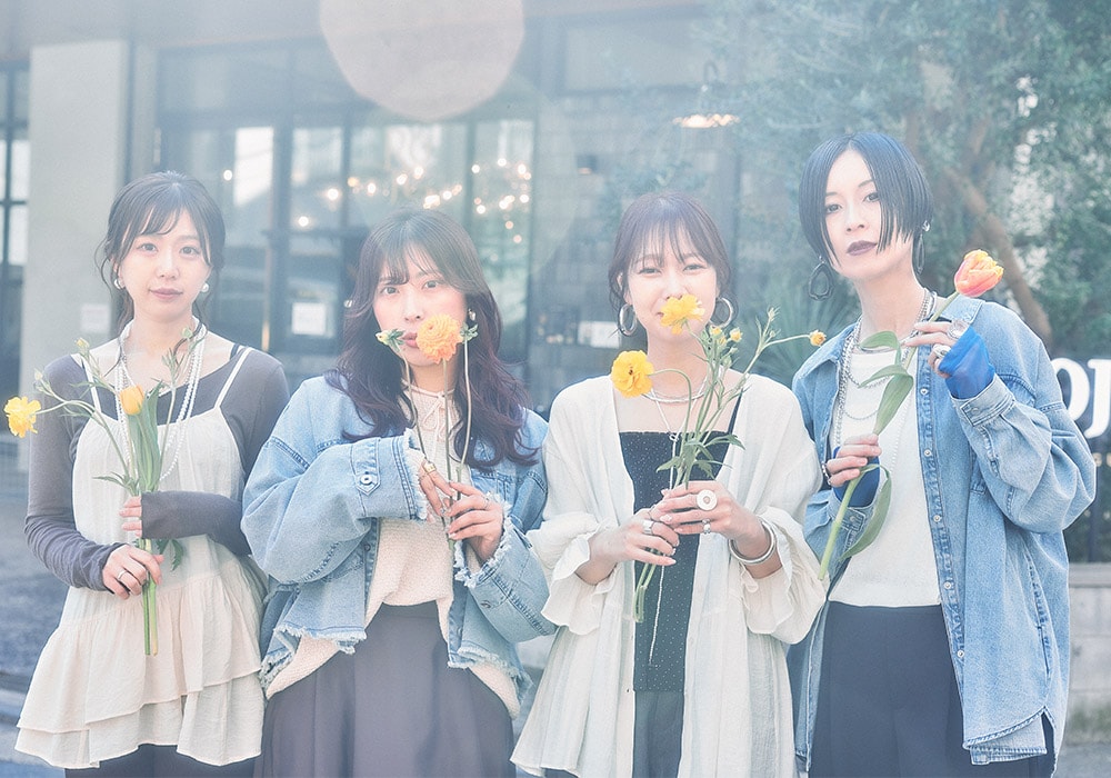4人がお花を持ったビジュアルには