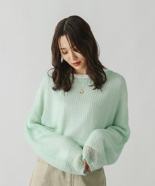 浜辺美波さん着用/モヘヤタッチ透かし編みプルオーバー/長袖/579669