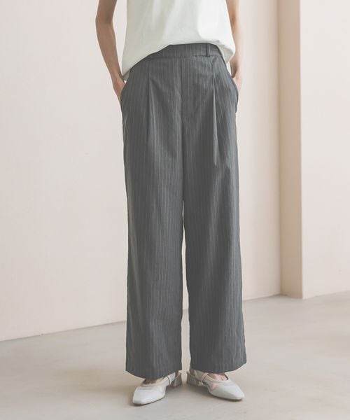 イージーケアリネンストレートパンツ/600994
