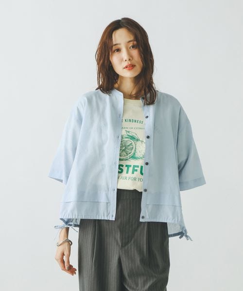 イージーケアリネンカーディガン五分袖/601225