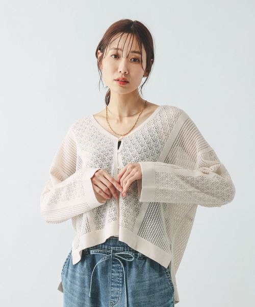 パネルレースアミVネックカーディガン/ 642713