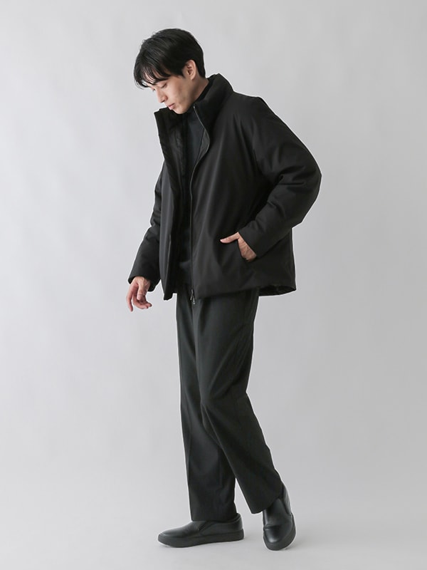暖かさとスッキリ見えを兼ね備えたダウンブルゾンになっています。
