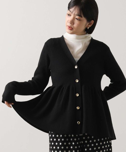 リブペプラムフレアVネックカーディガン