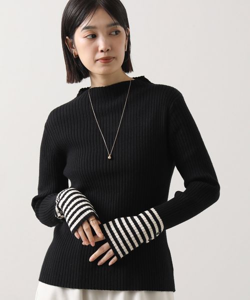 リブボトルネック袖バイカラーニット