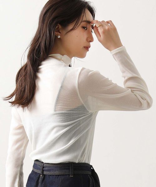 フロッキーストライプモックネックトップス