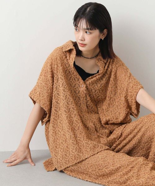幾何カットジャガードフレンチスリーブシャツ