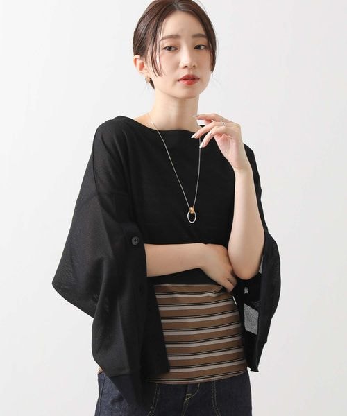 ボタンスリットスリーブショートトップス