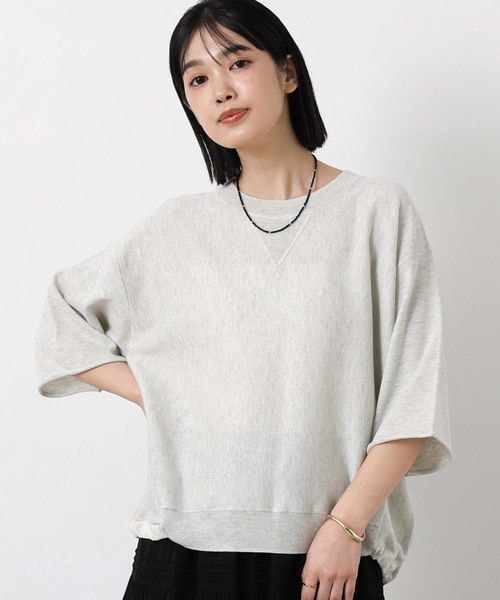 スウェットライク5分袖ニット