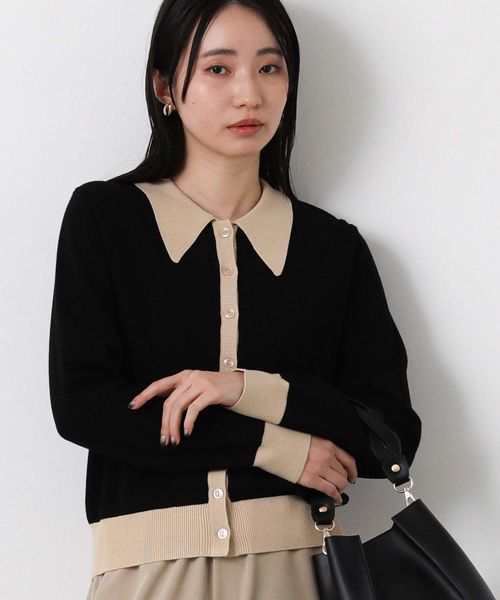 バイカラーポロ衿カーディガン