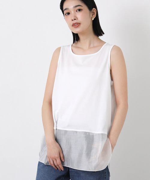 スクエアネック裾シアータンクトップ