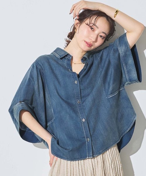 【予約で10%OFF】シアーデニム5分袖シャツ