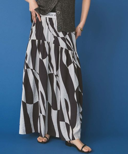 【予約で10%OFF】ジオメトリックウエストロゴスカート