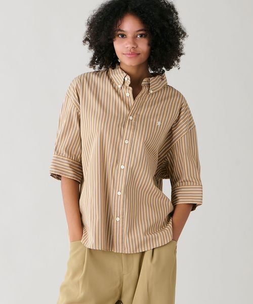 コットンタイプライター ストライプボタンダウンシャツ WOMEN