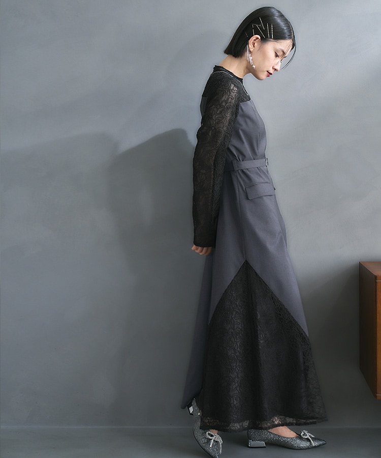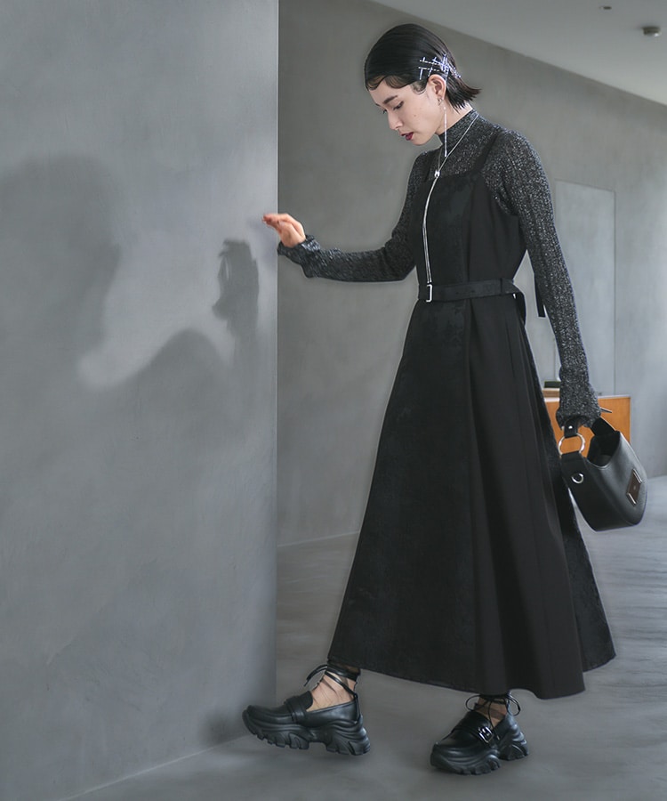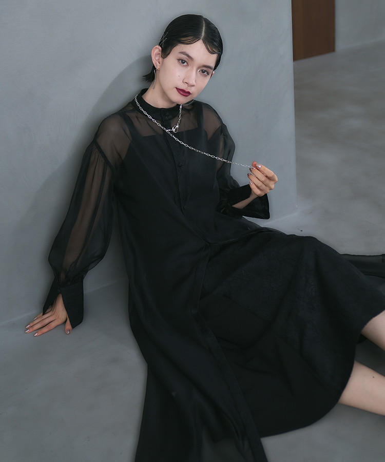 前後2WAYで着られるシアーワンピとジャガード素材の