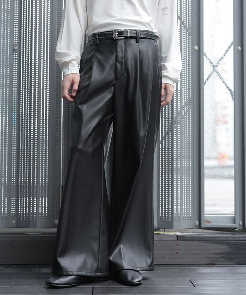 【SET UP対応】LUXEレザーワイドフレアパンツ