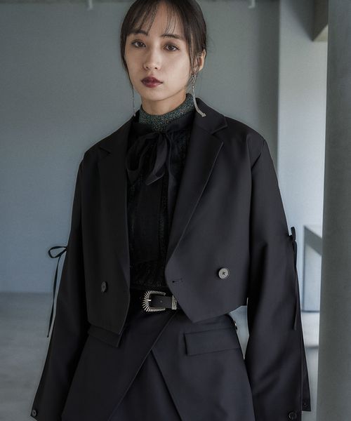 【SET UP対応 LADIES】ソデリボンタックショートジャケット