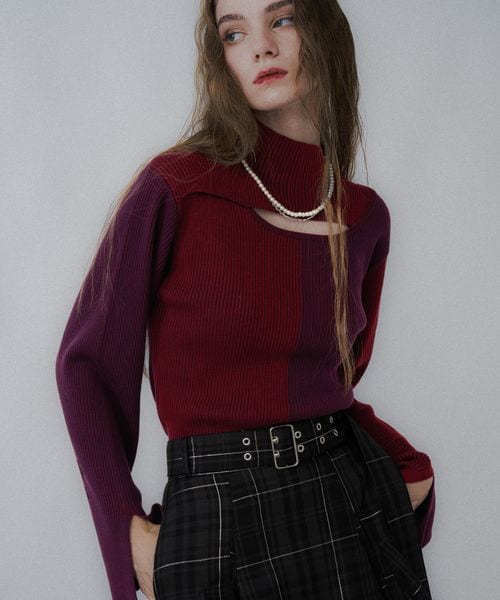 【LADIES】フロントアキマルチカラータイトニット