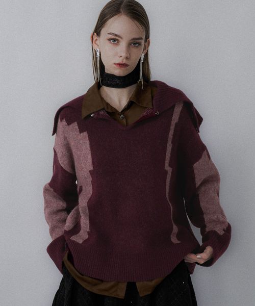 【WEB先行予約 LADIES】BIGカラーニットプルオーバー