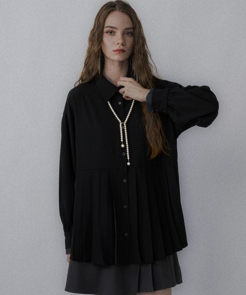 【LADIES】ソデレイヤープリーツシャツ