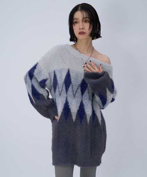 【LADIES】アーガイルニットミニワンピース