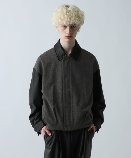 【一部カラーSET UP対応】レザーキリカエツイードブルゾン