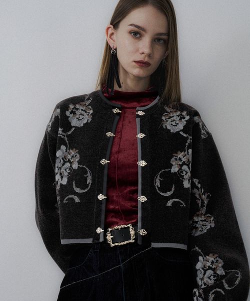 【WEB先行予約 LADIES】チャイナガラモールニットカーディガン