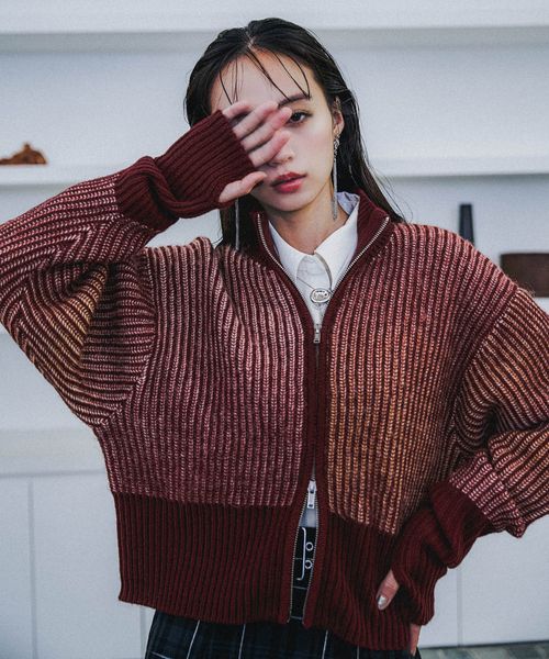 【LADIES】ハイショクジップニットカーディガン