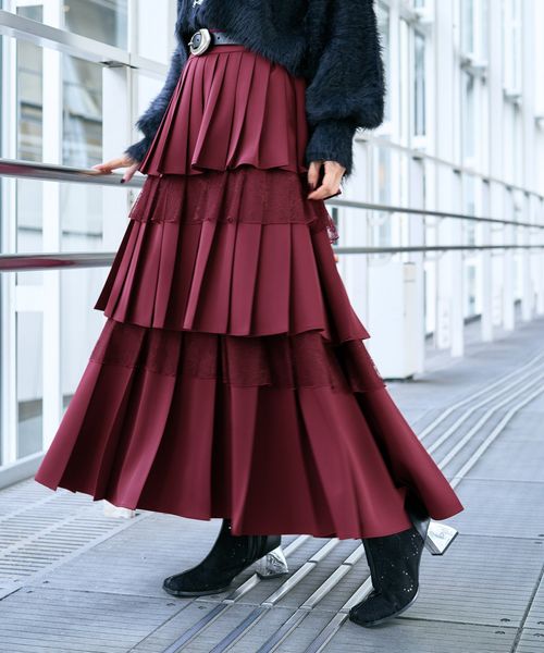 【WEB先行予約 LADIES】フリルプリーツティアードスカート
