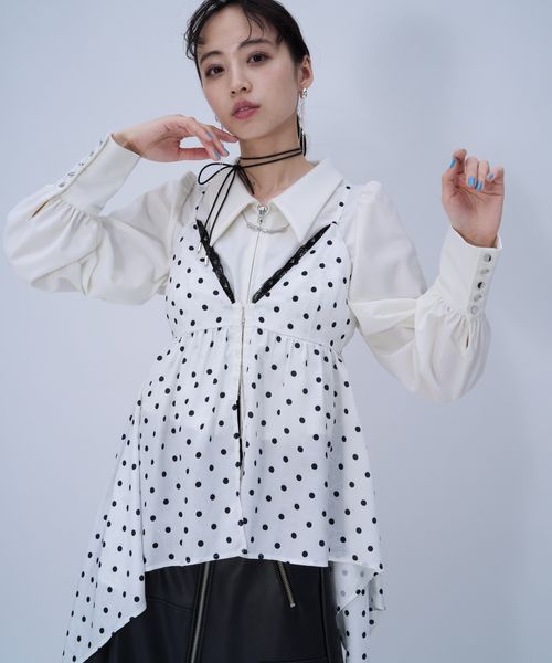 【LADIES】2Pドットキャミソール/ショートシャツ
