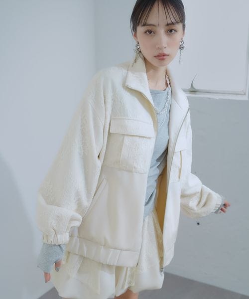 【SET UP対応 LADIES】レースデザインミドルブルゾン