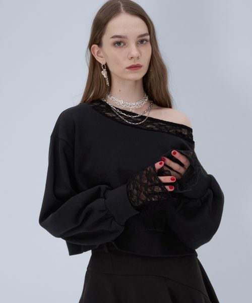 【WEB先行予約 LADIES】レースレイヤーワンショルスウェット